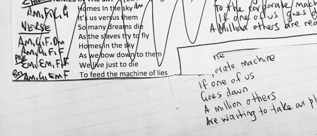 Back in September 17, 2013, I wrote the lyric lines, “homes in the sky, it’s us versus them, so many dreams die as the slaves try to fly. Homes in the sky as we bow down to them, we live just to die to feed the machine of lies.”