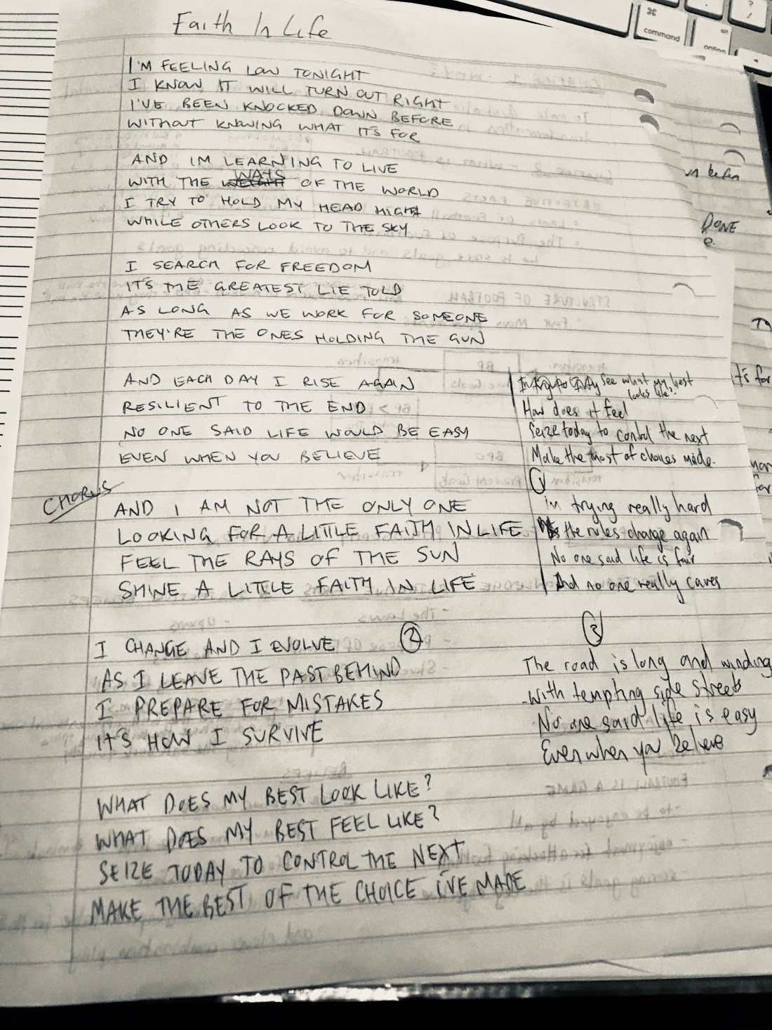 But when I rewrote “The World We Live In” on March 5, 2019, I had two nice pieces of music without a song. So, on the same day, the first acoustic music memo of “Faith In Life was also written.