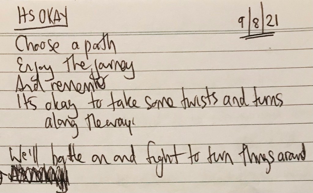 And I met my future self who wanted to tell my current self that it’s okay to mess up, make mistakes, feel like crap some days and feel great on other days. I am human after all. And that formed the basis of the lyrical message in the song.