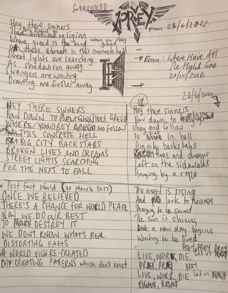 At first i had an lyric from 2011, called “Cocaine House” that I tried to make fit, but it didnt work especially around the Chorus. In had lines like “all cried out / you are walking blind / into a spiral / in this cocaine house”. Its very different to what I had in mind.