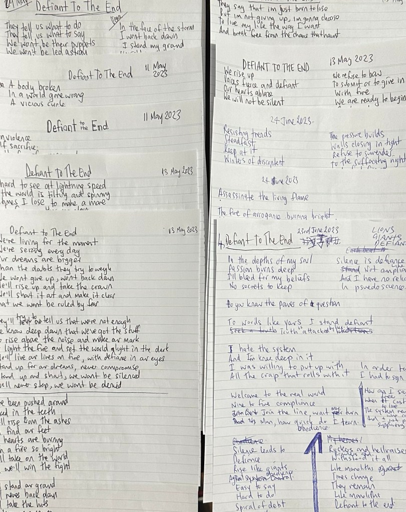 So I wrote and wrote and wrote a lot of lyrics and pulled out lyrics from diaries. Here is a snapshot.