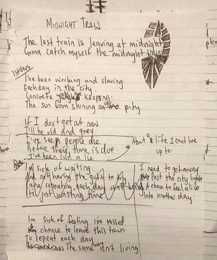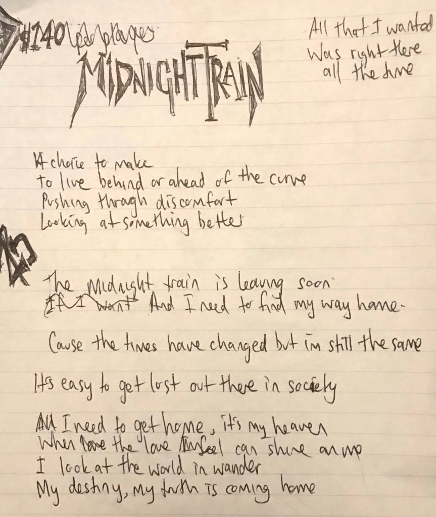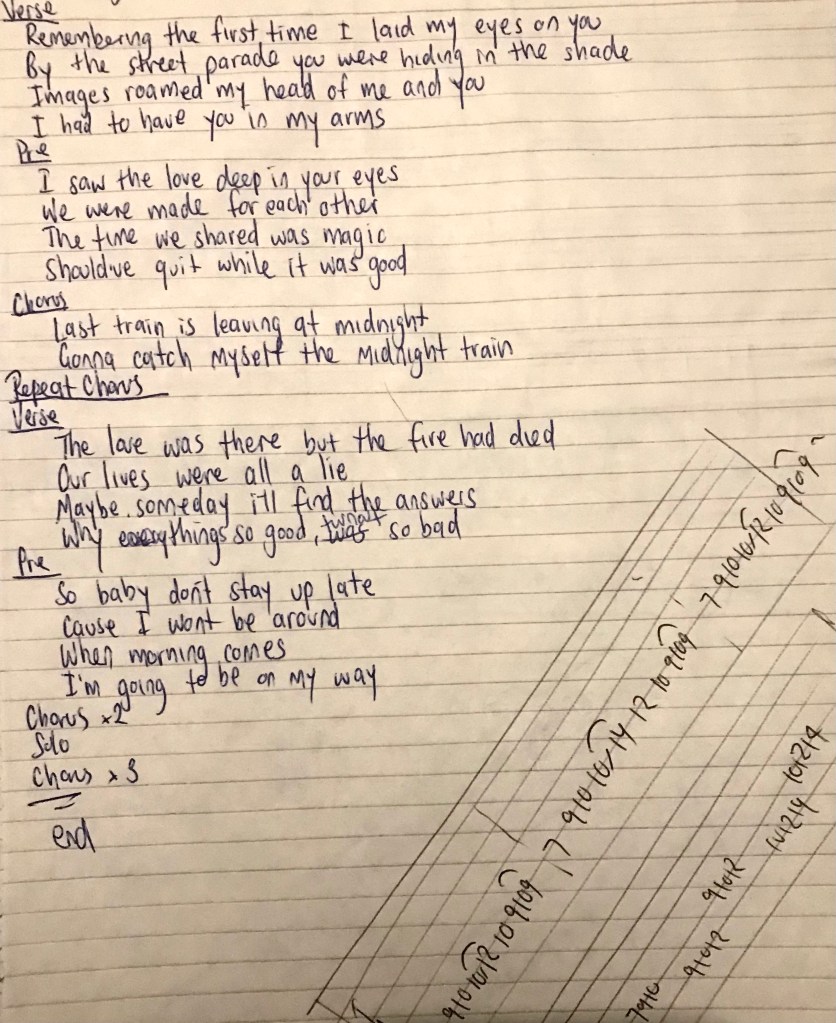 Then I started to re-write the lyrics to the same melody I had previously. The only lyrics that stayed the same was the Chorus hook about the “last train leaving at midnight”. It’s what the song was built on.